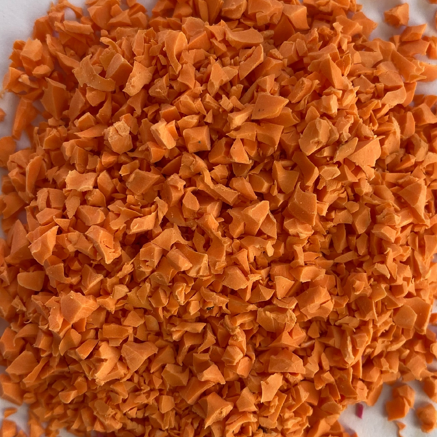 TPV крошка производится из безопасных полимеров высокого качества, не содержащих цинка, фталатов и других веществ, вредных для здоровья, а также не выделяет серу или пероксиды. Так что её можно спокойно применять даже на детских игровых площадках, рассчитанных на самых маленьких посетителей. За счёт вулканизирования оранжевая TPV крошка не боится сложных погодных и климатических условий. Например, она гораздо дольше нагревается при воздействии солнца, чем резиновая крошка, и имеет высокую степень защиты от прямых солнечных лучей. TPV крошка RAL 2011 (насыщенный оранжевый) позволит создать на вашем объекте невыцветающее оранжевое настроение!