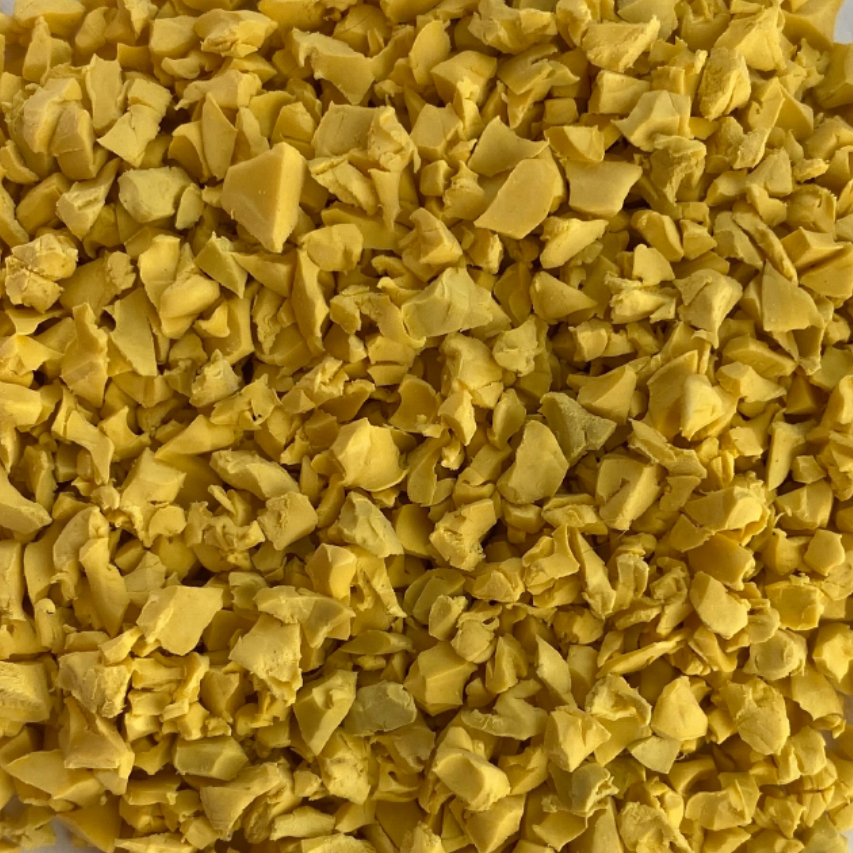 Каучуковая TPV крошка — экологичный и долговечный универсальный материал дынно-жёлтого цвета по RAL. Жёлтый цвет считается самым заметным, поэтому оптимально подойдёт не только для рисунка солнца, но и для любой важной маркировки. Упаковка 20 кг.